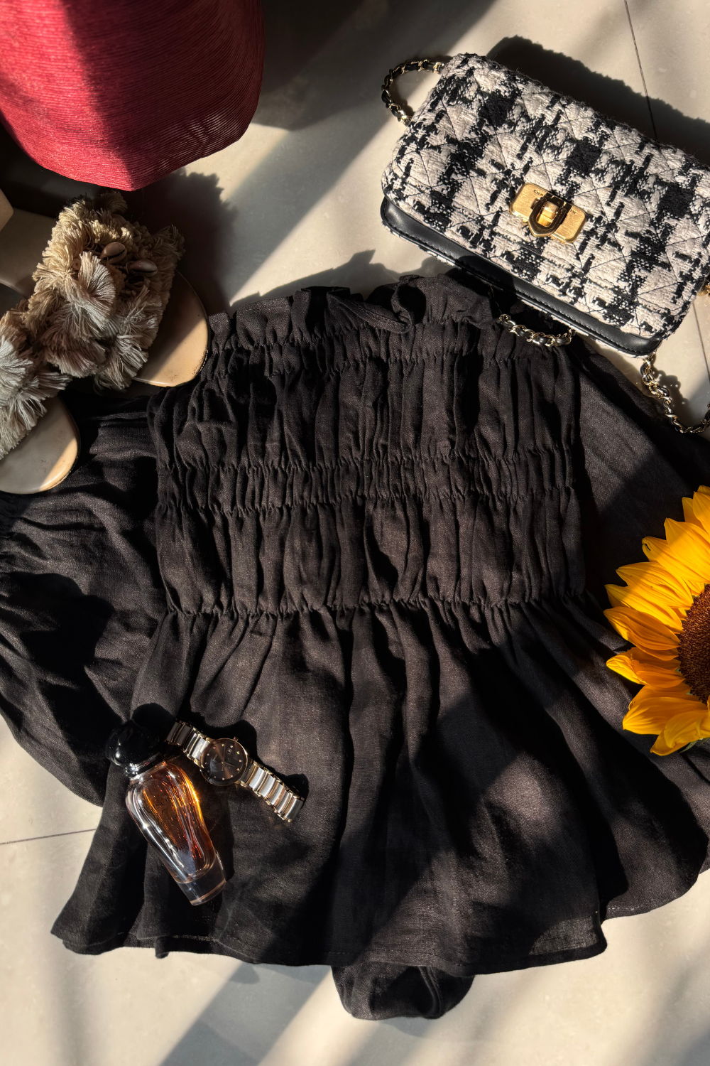Bold, breathable, and beautifully made—this co-ord set is a timeless wardrobe staple. Features full-length pants and a ruched tube top.